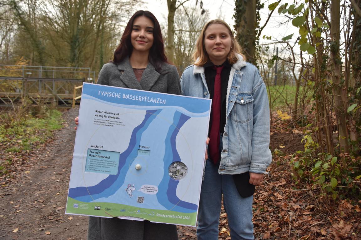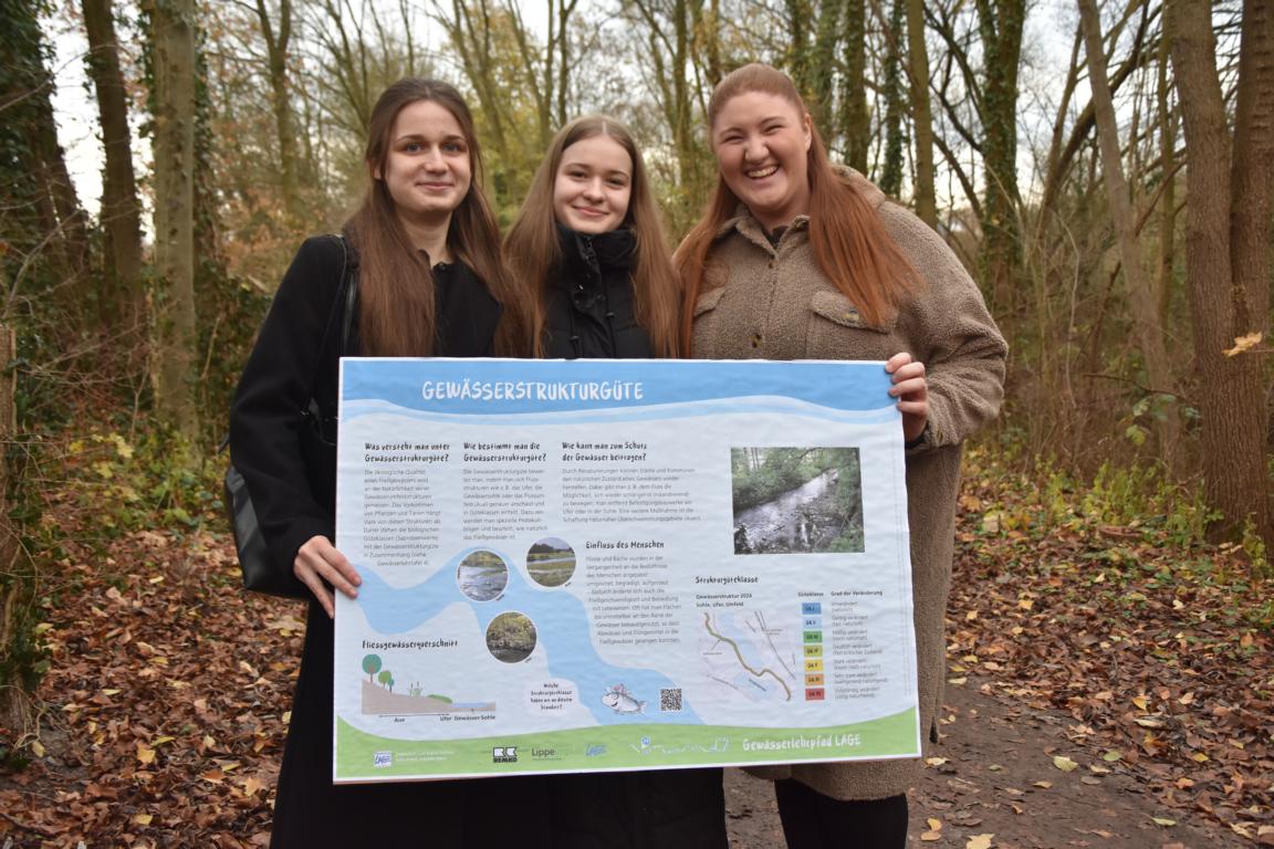 Ermöglicht wurden die neuen Stationen von der Umweltstiftung Lippe, die das Projekt bereits seit mehreren Jahren fördert, sowie den beiden Lagenser Unternehmen RRR Stahl- und Gewerbebau GmbH und REMKO GmbH & Co. KG. Dr. A. Heinrike Heil von der Umweltstiftung Lippe sagt: „Gute Umweltbildung stärkt das Verständnis für Zusammenhänge in der Natur und schafft Bewusstsein für die Verantwortung vor Ort. Projekte wie der Gewässerlehrpfad zeigen, wie sich dieses Wissen anschaulich vermitteln lässt.“ Die Stadt Lage begleitet das Projekt organisatorisch und unterstützt die fortlaufende Weiterentwicklung des Pfads. Der erste Beigeordnete Thorsten Paulussen hebt hervor, dass der Gewässerlehrpfad nur durch das Zusammenspiel von Schule, Verwaltung und Förderern wachsen konnte und damit ein dauerhaftes Angebot der Umweltbildung in Lage schafft. „Als Lagenser Unternehmen ist es für uns selbstverständlich, Bildungsprojekte vor Ort zu unterstützen – gerade wenn sie jungen Menschen ermöglichen, selbst aktiv zu werden“, sagt Elmar Wöstenkötter, geschäftsführender Gesellschafter der RRR Stahl- und Gewerbebau GmbH.