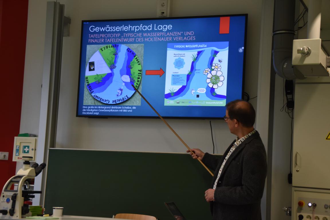 Schülerinnen und Schüler der Freiligrath-Realschule entwickelten die Inhalte im Rahmen eines Unterrichtsprojekts und setzten sie gemeinsam mit ihrem Biologielehrer Wolfgang Somsen um. „Wenn die Jugendlichen erleben, dass ihre Arbeit später öffentlich genutzt wird, schafft das eine Motivation, die man im Unterricht so kaum erzeugen kann. Gleichzeitig bekommen sie ein Gefühl dafür, wie viel Sorgfalt und Abstimmung nötig sind, bis eine Idee zu einer fertigen Tafel wird, die dann dauerhaft an der Werre steht“, sagt Somsen.