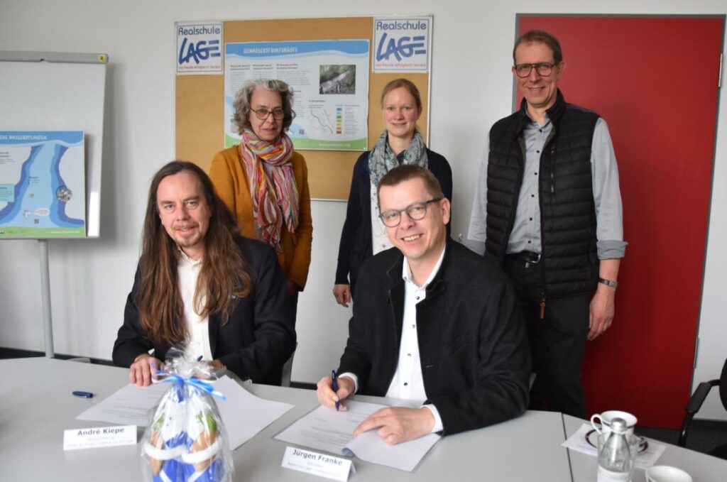 Ein zentrales Element der Zusammenarbeit ist die Unterstützung des Ausbaus des Gewässerlehrpfades Lage, der seit einigen Jahren auf Grundlage von Entwürfen von Schülerinnen und Schüler unserer Schule entsteht, die dabei von Biologielehrer Wolfgang Somsen betreut und begleitet werden. Der von Projektinitiator Wolfgang Somsen ins Leben gerufene Gewässerlehrpfad kann durch die finanziellen Unterstützung neuer Tafeln durch die Pfeifer & Langen GmbH & Co. KG im Jahr 2026 um weitere Lehrtafeln erweitert werden.